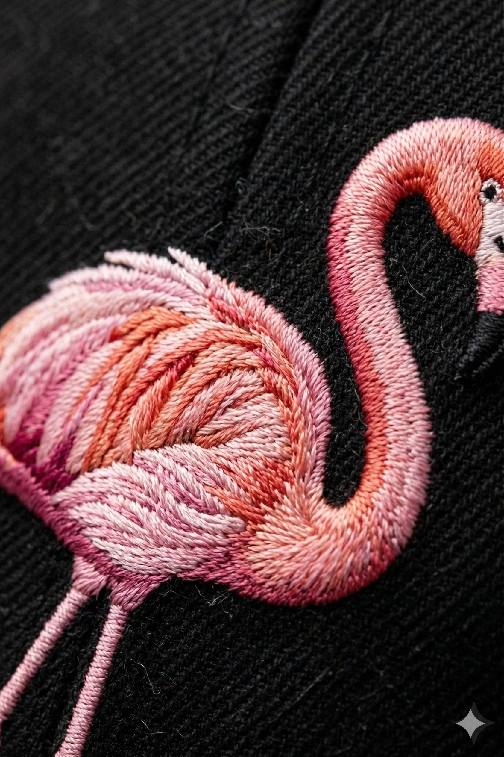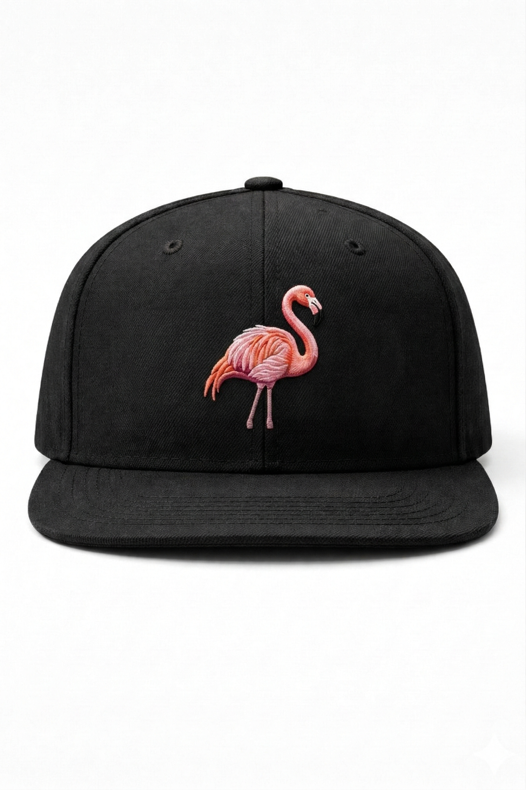 Casquette noire avec flamant rose brodé. L'accessoire signature du club.